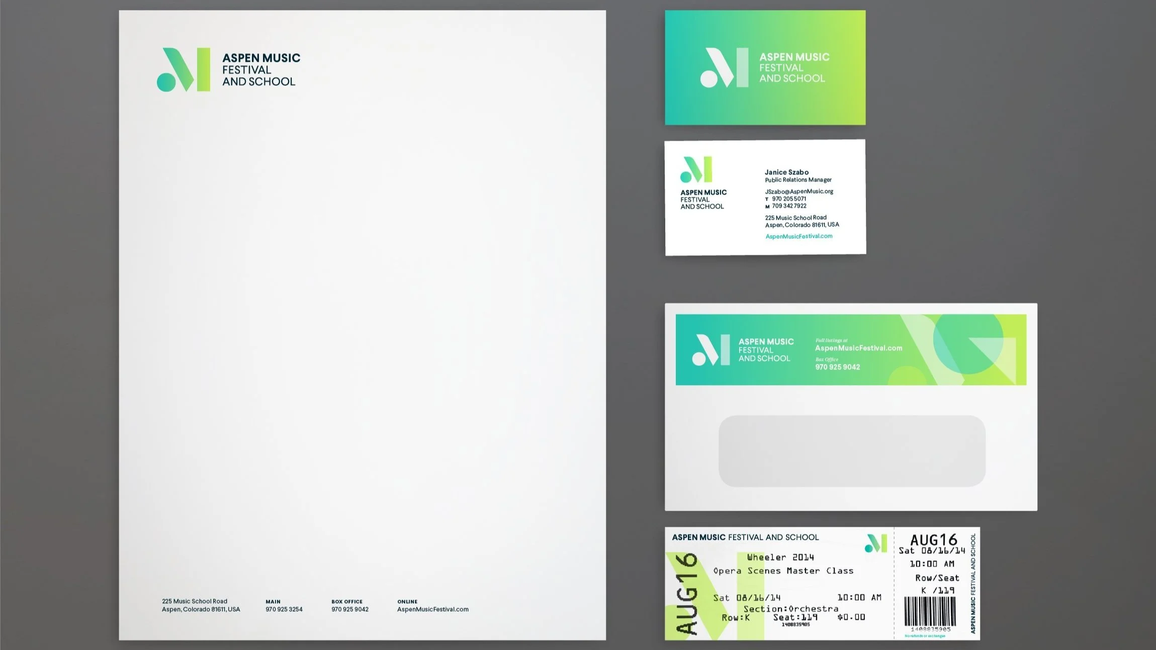 Arts Branding had the pleasure of working with the Aspen Music Festival and School, which culminated in the launch of its first brand strategy and fully conceived visual identity. We engaged London-based international design director Jessica Philpott to direct and create the identity based on the brand strategy.